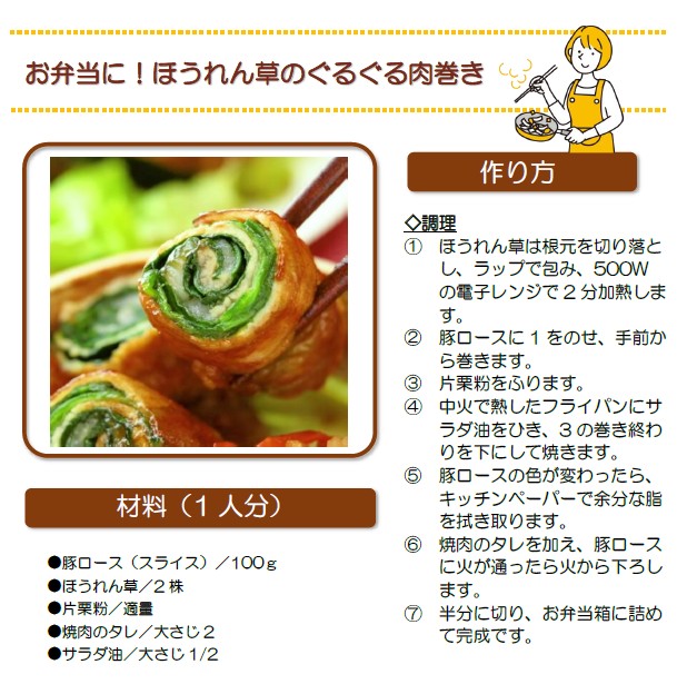 お弁当に!ほうれん草のぐるぐる肉巻き
