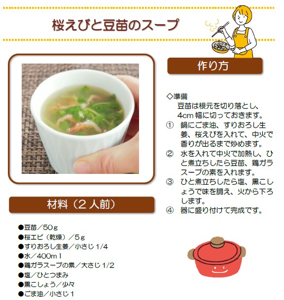 桜エビはカルシウムが豊富です。 特に、干した桜エビには牛乳の18倍、サバの7倍にあたる約2,000mg/100g以上のカルシウムが含まれ、骨密度の維持や骨粗しょう症予防に役立ちます。 また、強い抗酸化作用を持つアスタキサンチンも含まれ、体内の活性酸素を抑えて老化を遅らせ、免疫力を強化します。