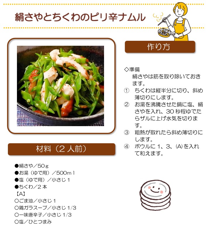 さやえんどうは緑黄色野菜に分類され、栄養価が高いです。老化を予防する「カロテン」、免疫力を高め風邪の予防になる「ビタミンC」、便秘の改善や整腸作用のある「食物繊維」が豊富です。小さな豆部分にもエネルギー代謝や疲労回復に作用する「ビタミンB群」や「たんぱく質」、必須アミノ酸の「リジン」も含まれています。リジンは体の成長や修復に重要な役割を持ちます。集中力の向上や、カルシウム吸収促進の効果もあります。